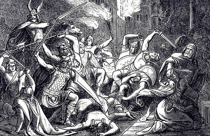 At the end of March, 539, Mundilas and his men marched out of Milan into well-treated captivity. Behind them, the wrath of the Ostrogoths fell on the citizens of Milan. I have found it difficult to find much modern work on the ensuing massacre. Procopius tells us that every male citizen was killed, every woman enslaved, and places the death toll at 300,000, which cannot possibly be correct, though the number itself isn’t really important in the face of the certain fact of the city’s destruction. The chronicler/bishop Marius of Aventicum wrote with typical class concern: “Milan was breached by the Goths and Burgundians, and there the senators with the rest of the people were slain even in the most sacred places, so that the very altars were stained with their blood.”