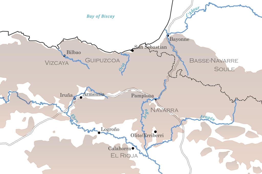 Christianity arrived, institutionally at least, by the end of the fourth century. A diocese was established at Calahorra by then, at the southern edge of the region. The bishop of Pamplona signed the acts of the council of Toledo in 589, the first appearance of that diocese in the historical record. But the presence of bishops and churches in the larger towns does not necessarily translate into full throated conversion of the people of the mountains and valleys. No evidence appears of church infrastructure anywhere except the fringes. Even the bishopric of Bayonne can’t be confidently dated before the ninth century, and it was relatively well connected to the fertile plains of Aquitaine. The best guess for the story of Basque conversion probably is of another gradual process of diffusion from the neighboring territories, with the process complete by the ninth or tenth century, possibly even later.